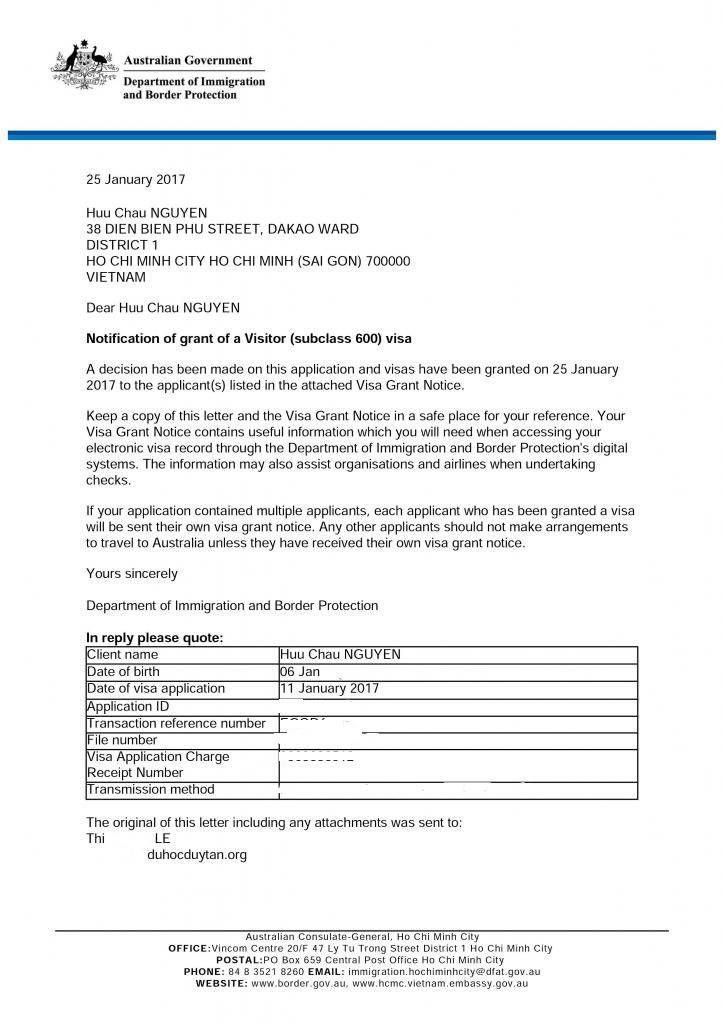 Chúc mừng anh Nguyễn Hữu Châu đã có visa Du lịch Úc!