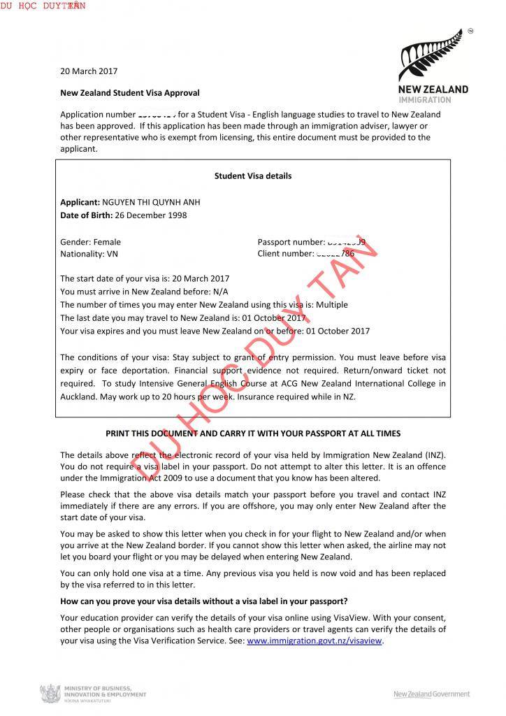 Du học New Zealand - Chúc mừng Nguyễn Thị Quỳnh Anh đã có visa du học New Zealand