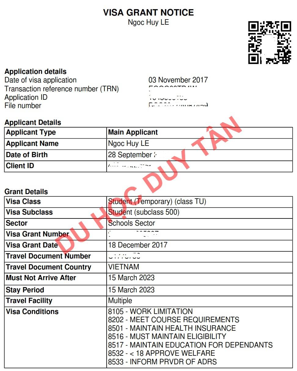 Du học Úc - Chúc mừng Lê Ngọc Huy đã có visa!